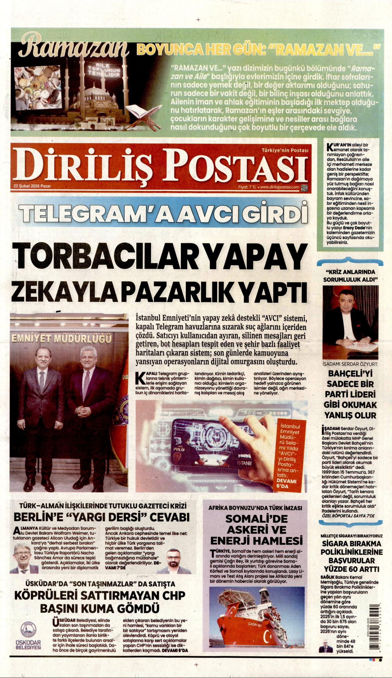 DİRİLİŞ POSTASI Gazetesi 22 Şubat 2026, Pazar Günü Manşeti