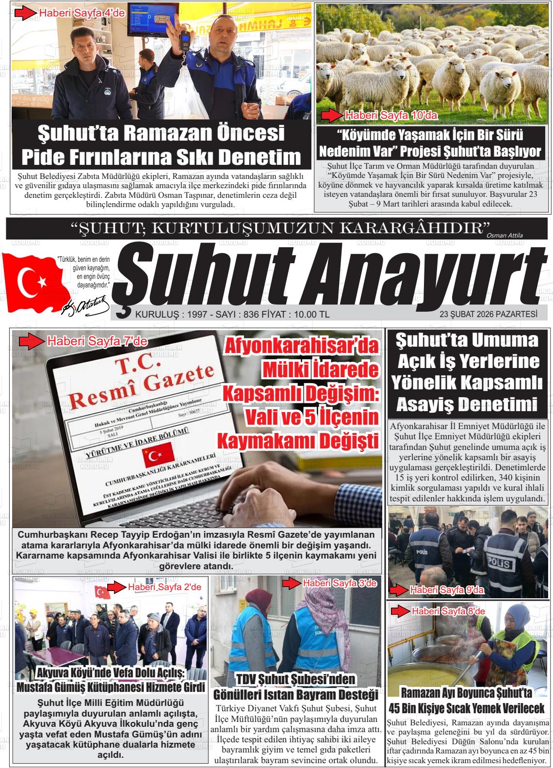Afyonkarahİsar Yerel Gazeteleri 23 Şubat 2026, Pazartesi Günü Manşeti