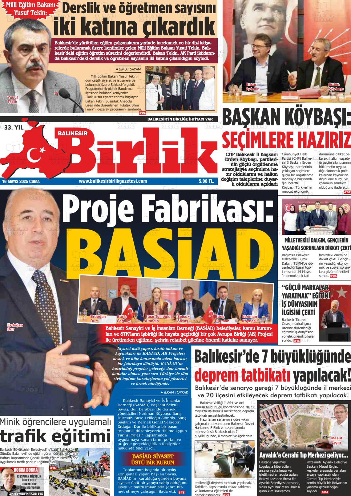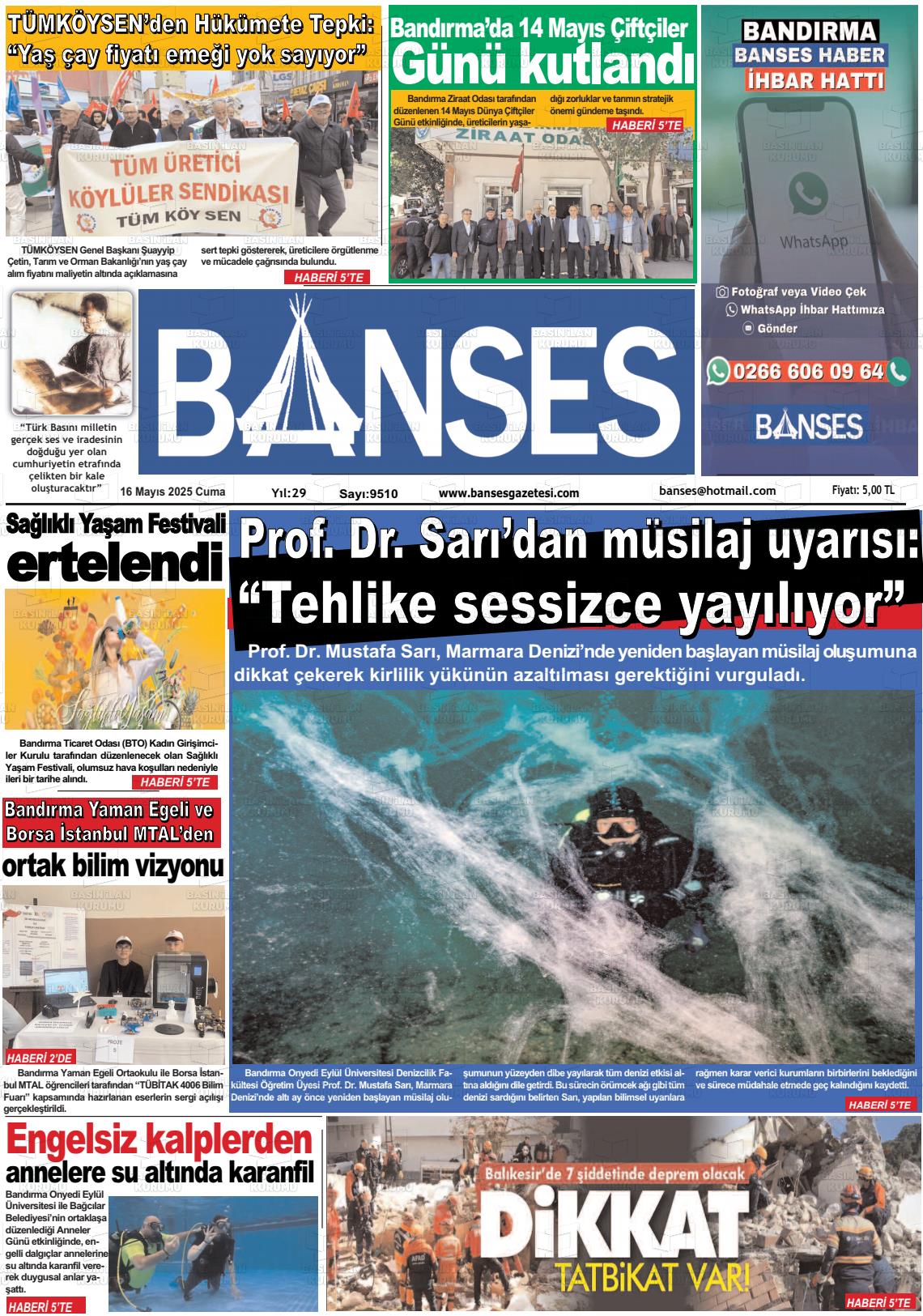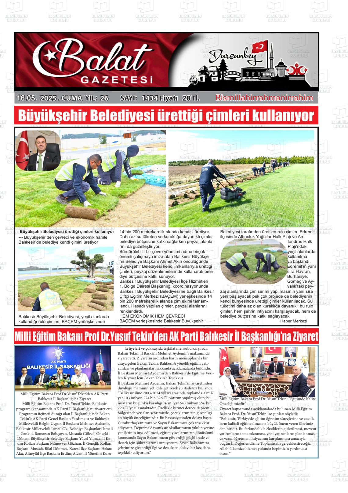 Balıkesİr Yerel Gazeteleri 14 Nisan 2026, Salı Günü Manşeti