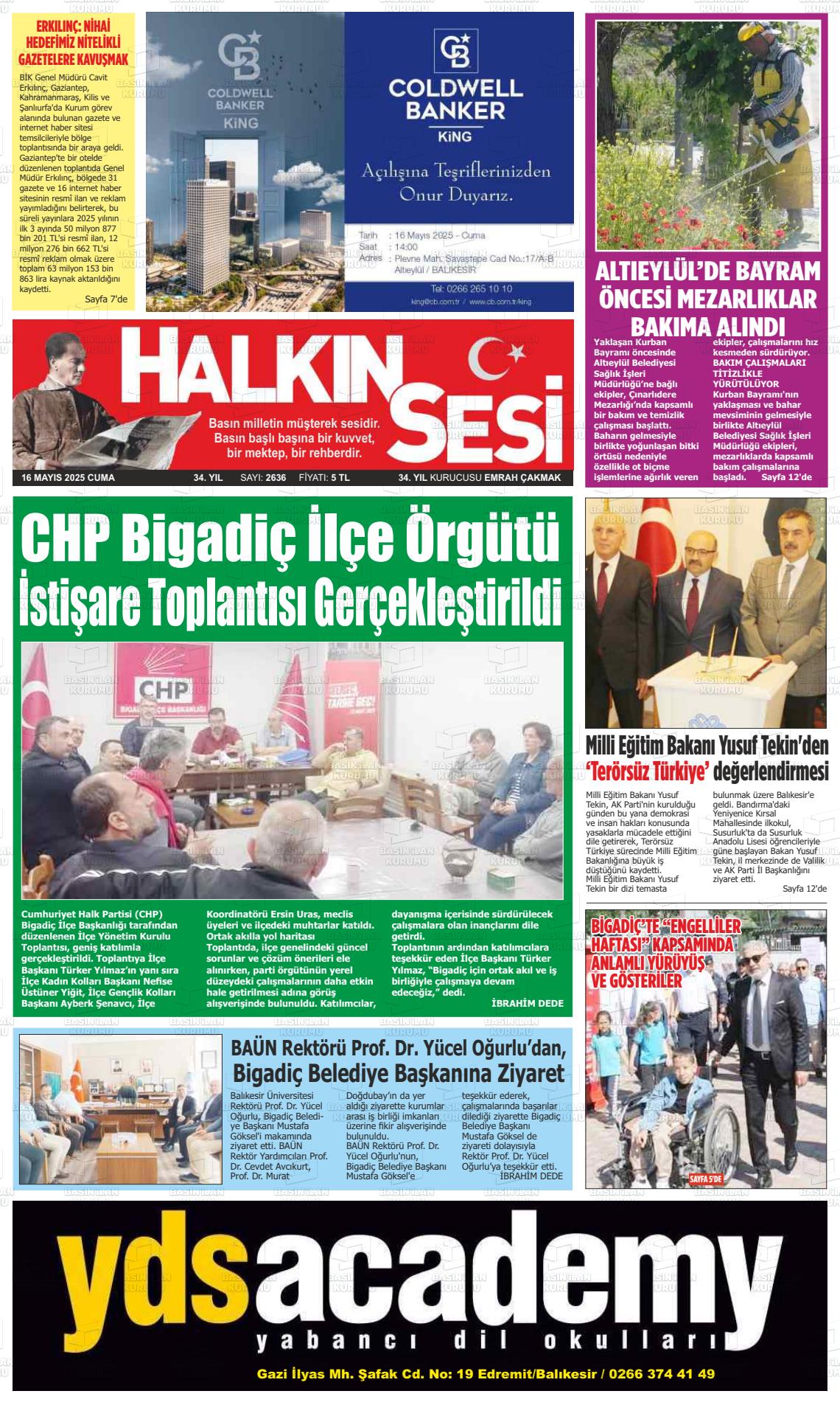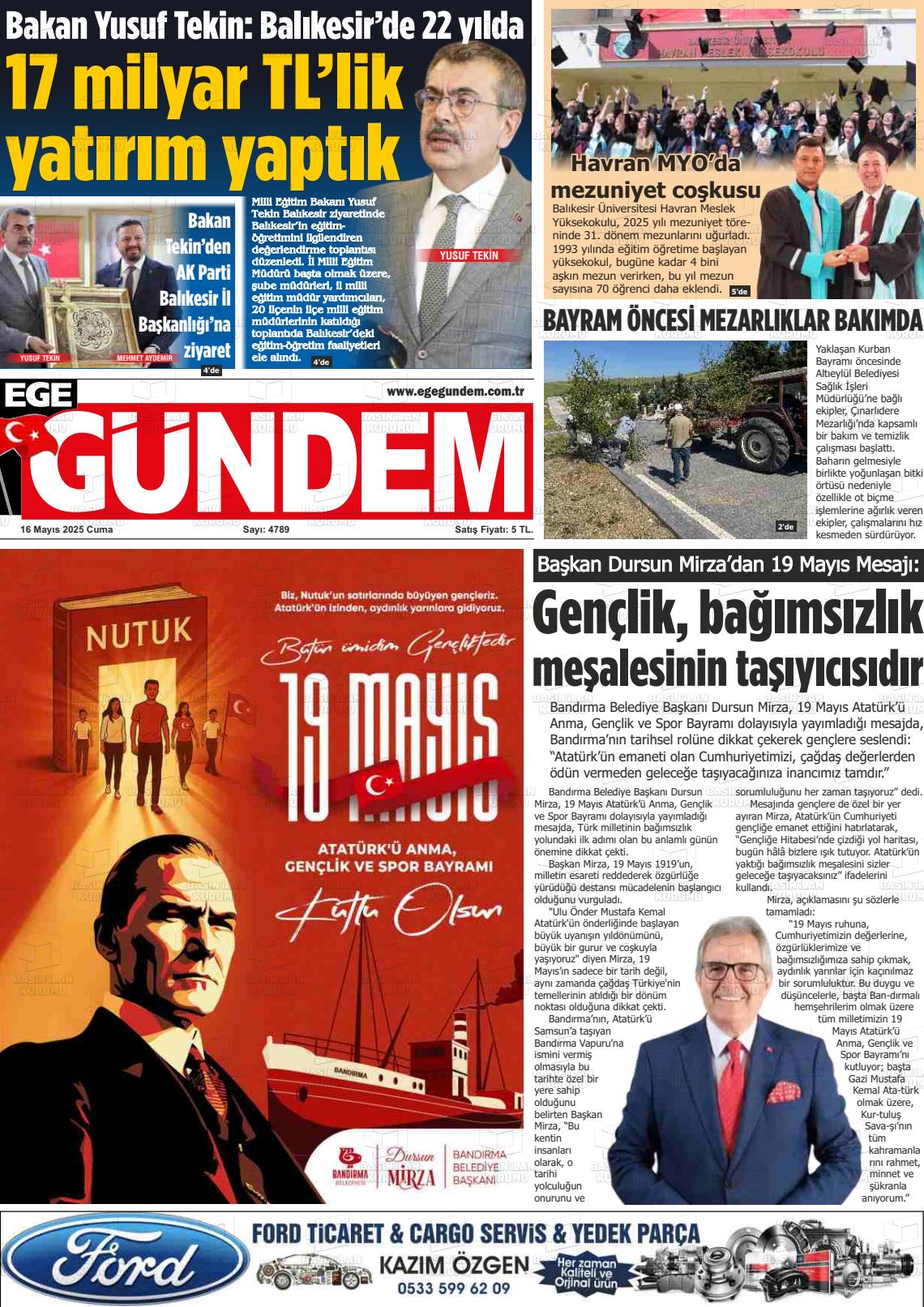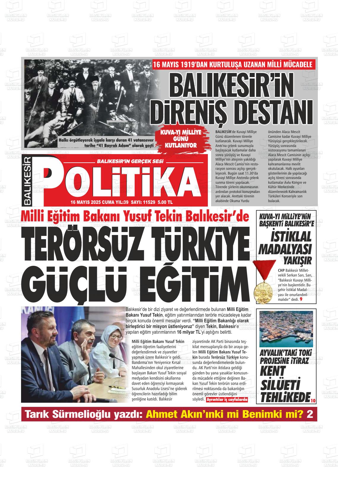 Balıkesİr Yerel Gazeteleri 14 Nisan 2026, Salı Günü Manşeti