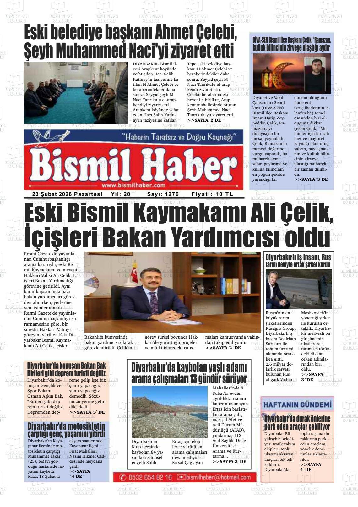 Dİyarbakır Yerel Gazeteleri 23 Şubat 2026, Pazartesi Günü Manşeti