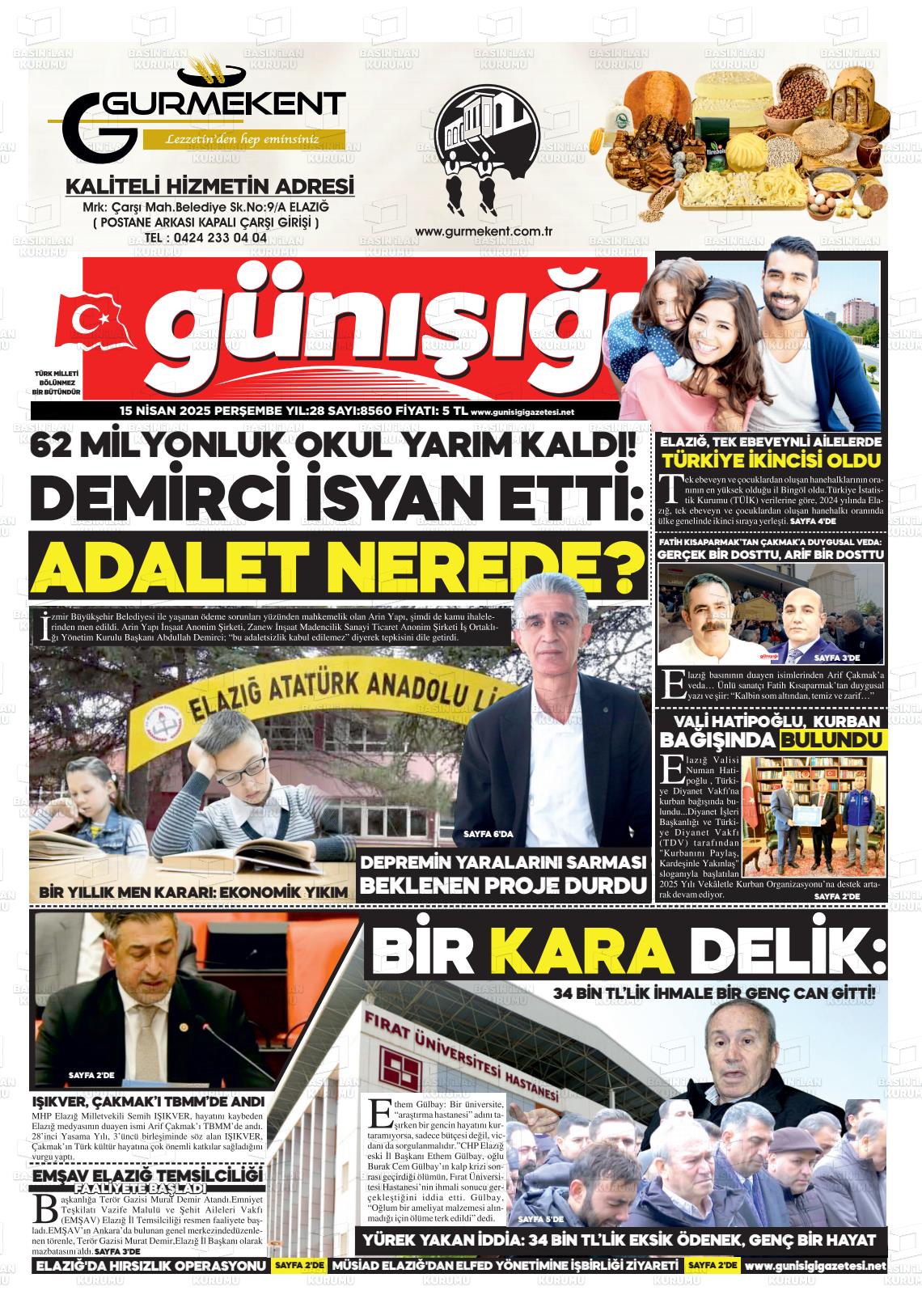 Elazığ Yerel Gazeteleri 14 Nisan 2026, Salı Günü Manşeti