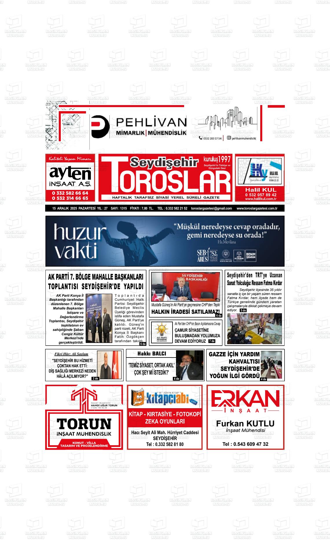 Konya Yerel Gazeteleri 16 Aralık 2025, Salı Günü Manşeti
