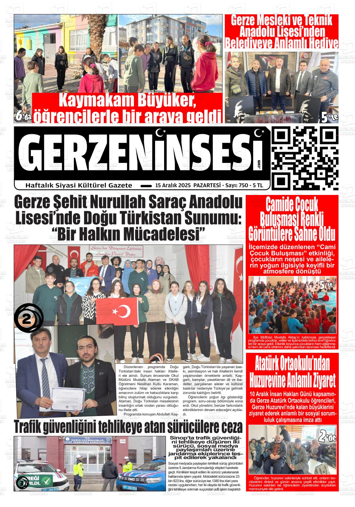 Sİnop Yerel Gazeteleri 16 Aralık 2025, Salı Günü Manşeti